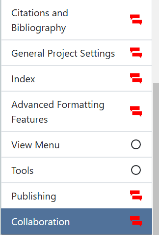Depending on the role assigned, a collaborator can edit the document in question. To see edits that have been made by other collaborators, click on the View menu and then click on View Other’s Edits. Each chapter that contains edits made by other users will have the red comment boxes next to the chapter name.