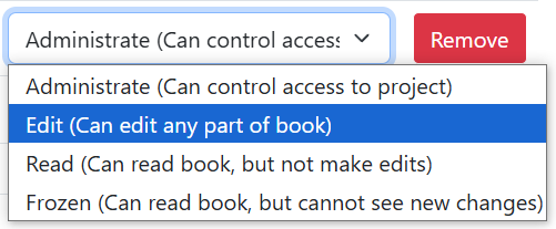 An Administrator may choose to temporarily move a user to Frozen. This role grants read-only access to the user for a specific version of the book. This role is particularly useful during final edits.