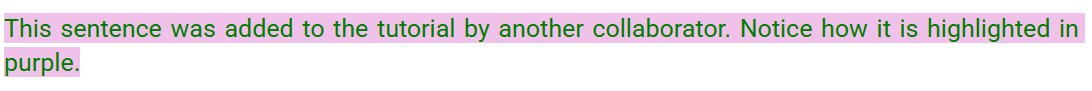 All changes made by other collaborators within the chapters themselves will be highlighted. Each collaborator will be assigned a distinct color. Hover over the edit to see the collaborator who made the edit.