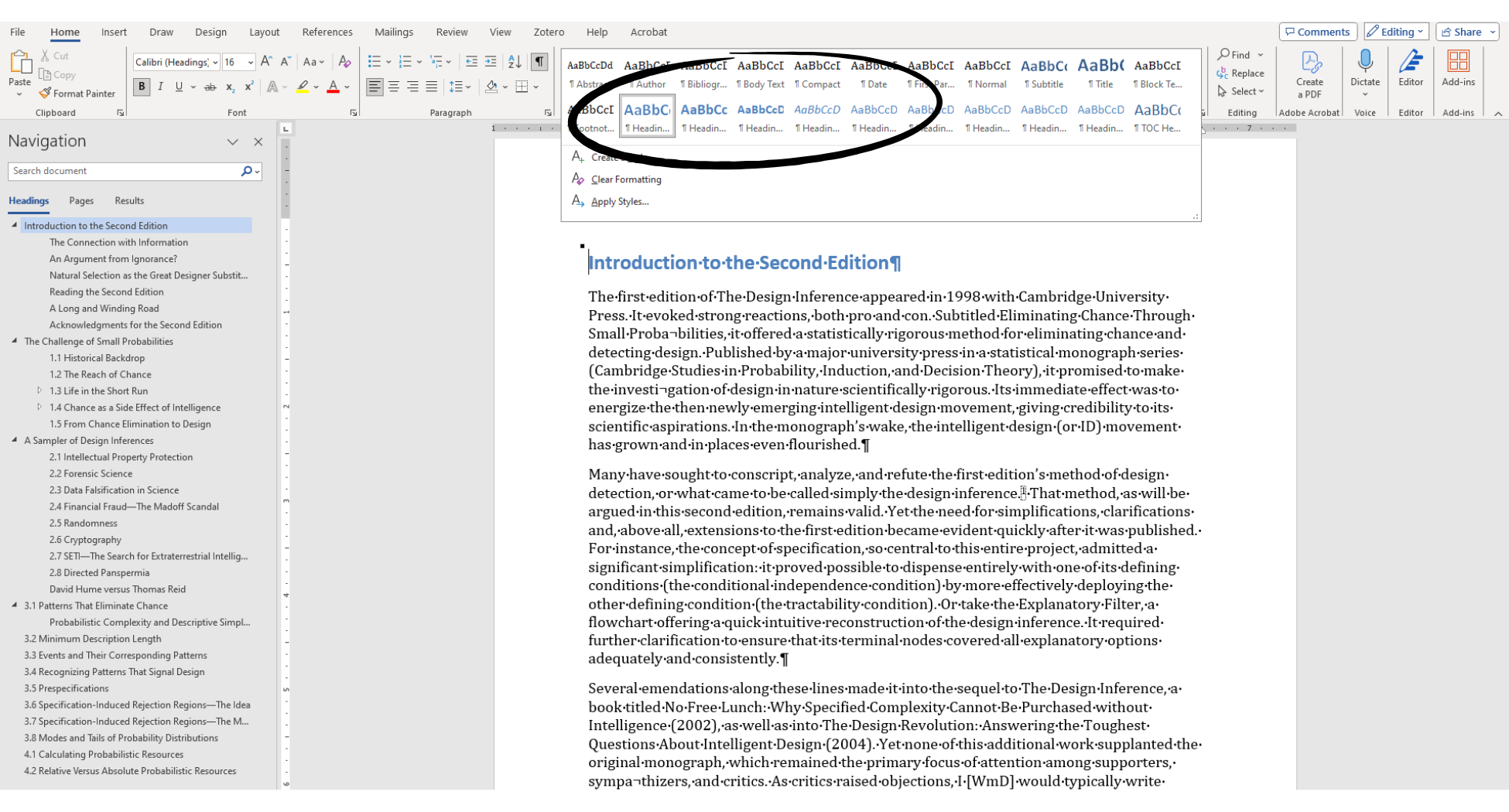 The preferred way to signal to Inkwell that you’re beginning a new chapter is to style the chapter title as Heading 1 in the styles menu in Word. Likewise, section headers should be styled as Heading 2, subsections should be styled as Heading 3, etc.