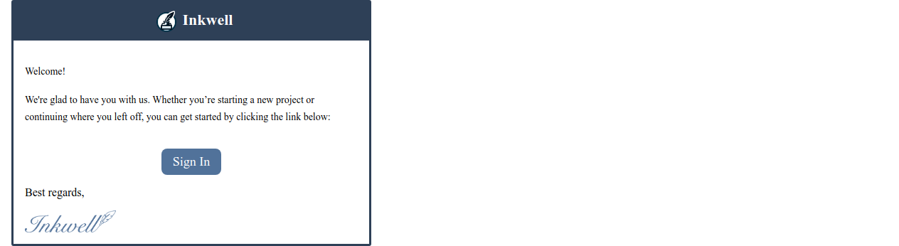 If you need to sign into Inkwell again or on a different computer, simply enter your email address again to get a new link.