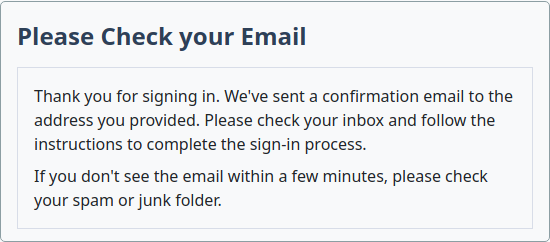 If you prefer, you can also enter an email address and click the “Get Started” button. You’ll see a message telling you to check your email: